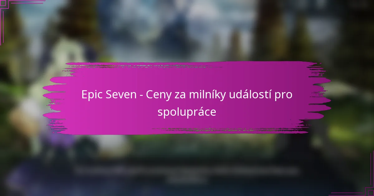 Odměny za milníky událostí se vztahují k odměnám, které hráči obdrží za splnění určených úkolů nebo dosažení určitých cílů v rámci časově omezené události v Epic Seven. Tyto odměny se mohou lišit typem a hodnotou v závislosti na struktuře a cílech události.